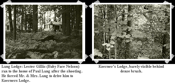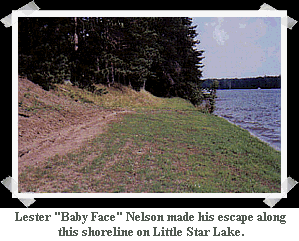 After the firing started, Baby Face Nelson took an escape route, on foot, along the Little Star Lake. His destination was Lang's Lodge.